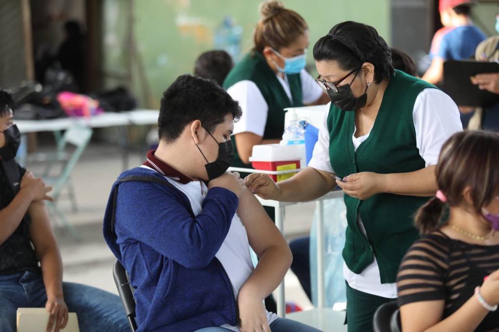 Mérida, Yucatán, 13 de diciembre de 2021.- De manera simultánea, en una nueva jornada que se desarrolló en orden y sin contratiempos, inicio la aplicación de la primera dosis de la vacuna contra el Coronavirus para adolescentes de 15 a 17 años de edad y el refuerzo para los adultos mayores de 38 municipios de Yucatán.