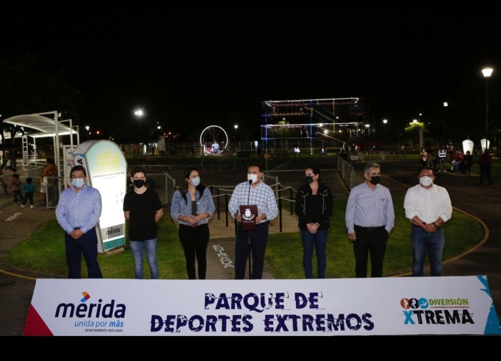 Mérida, 15 de diciembre de 2021. Con gran beneplácito por parte de la comunidad deportista y el público en general, el Alcalde, Renán Barrera Concha, inauguró la tercera y última etapa del Parque de Deportes Extremos con el que se cumple el compromiso de la administración municipal de ofrecer a las y los ciudadanos numerosos espacios de sano esparcimiento, seguros y recreativos.