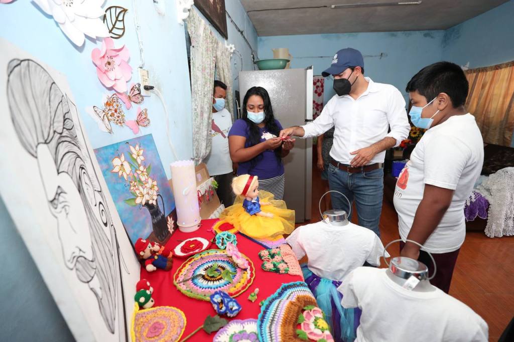Silvia Margarita recibió la visita del Gobernador Mauricio Vila Dosal en su taller en el municipio de Cansahcab, quien luego de una gira por esa demarcación, pasó a conocer un poco más sobre su negocio Manitas Creativas “Chivis”, donde ofrece manualidades para la decoración de fiestas, camisas pintadas a mano, fundas personalizadas, así como recuerdos y piezas tejidas o elaboradas con resina y porcelana.