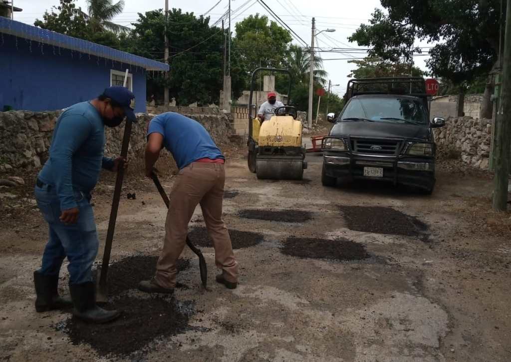 Las brigadas de bacheo continúan trabajando por distintas calles de la ciudad de Motul.