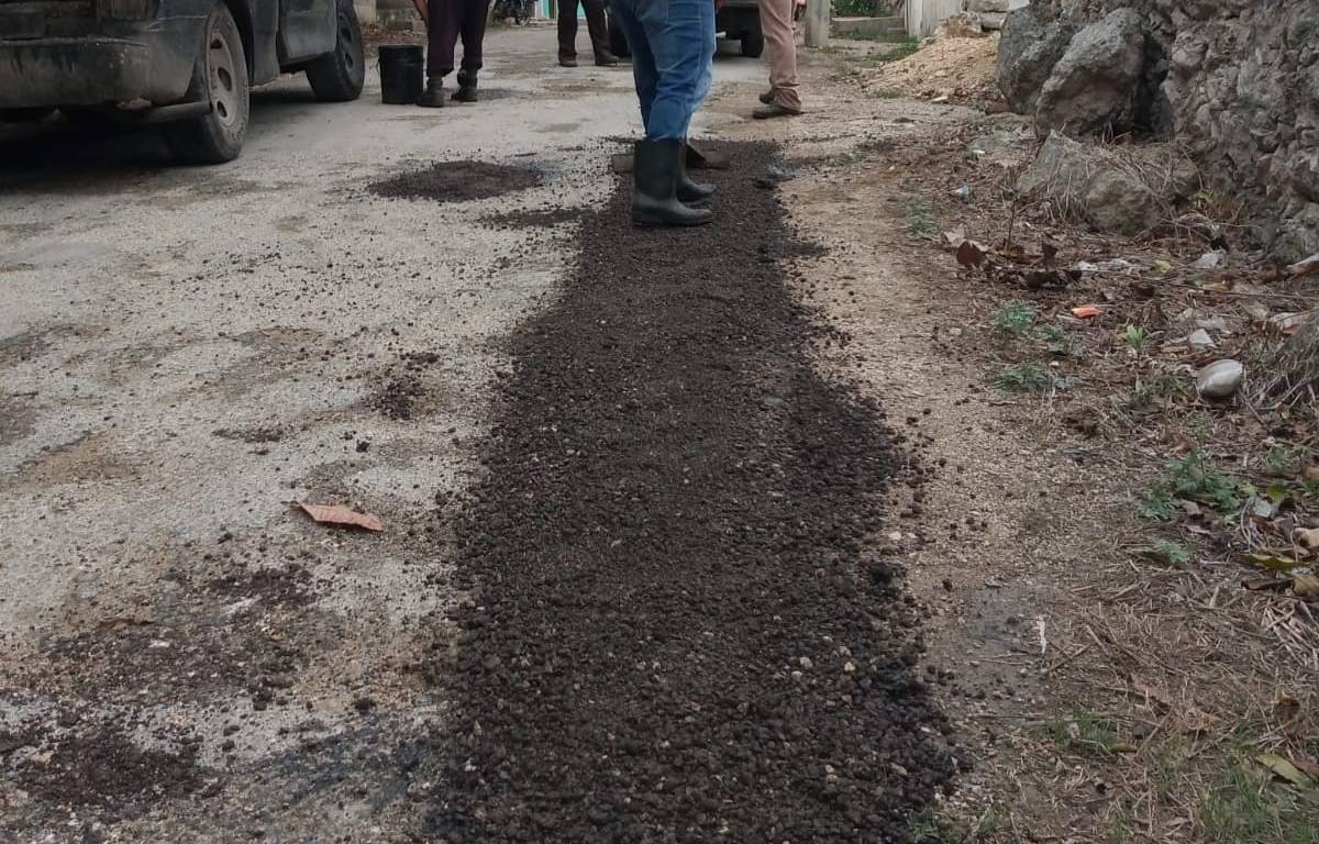 Las brigadas de bacheo continúan trabajando por distintas calles de la ciudad de Motul.