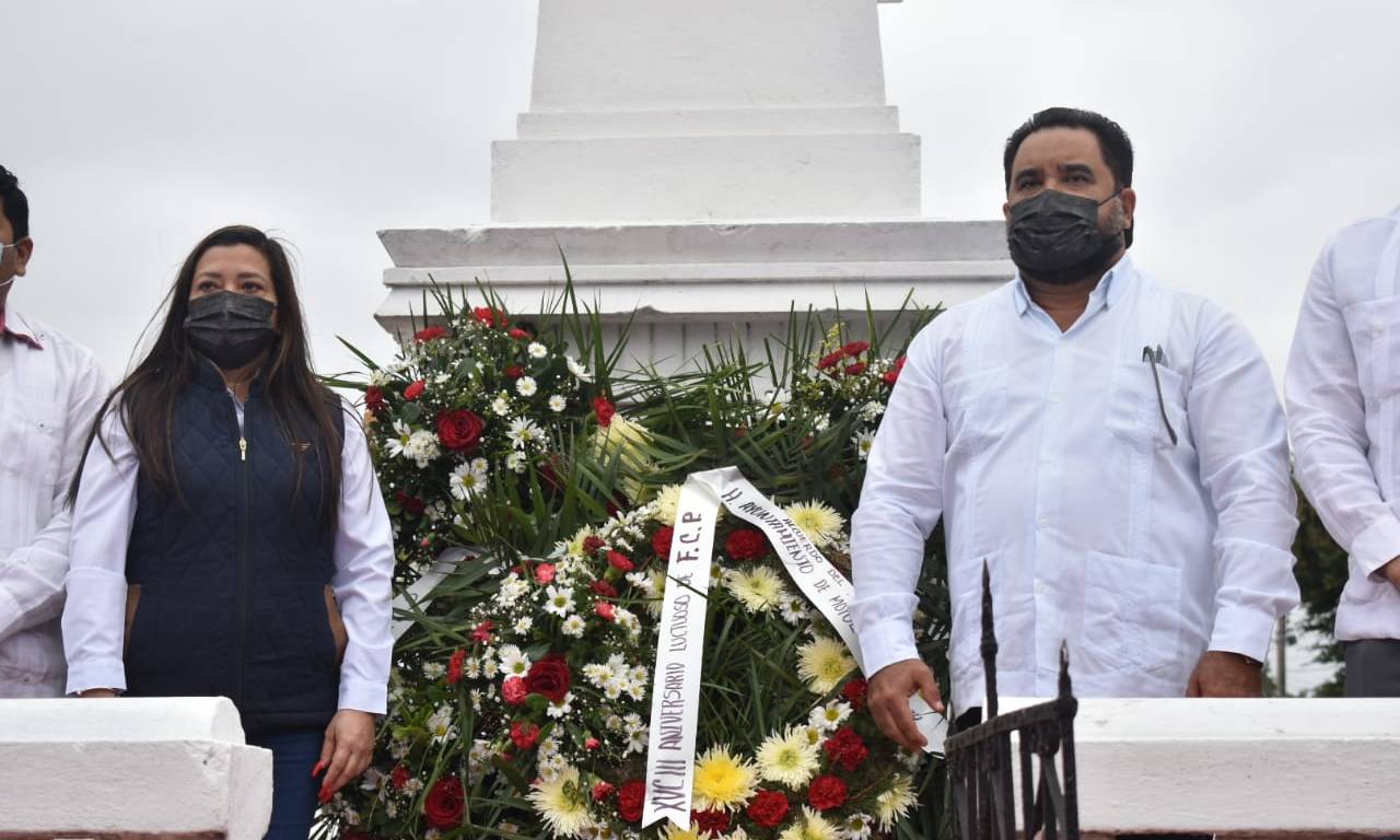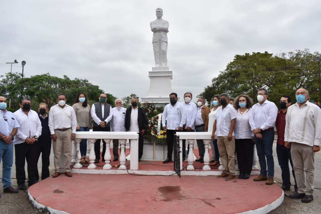 El alcalde, Roger Aguilar Arroyo estuvo acompañado de su esposa, la presidenta del DIF, Kelly Sosa Lugo y regidores, quienes junto al diputado del IX Distrito Erik Rihani y al secretario general y Jurídico del Infonavit Rogerio Castro Vázquez fueron los encargados de depositar una ofrenda floral, como muestra de respeto a quien en vida luchó por los que menos tienen.