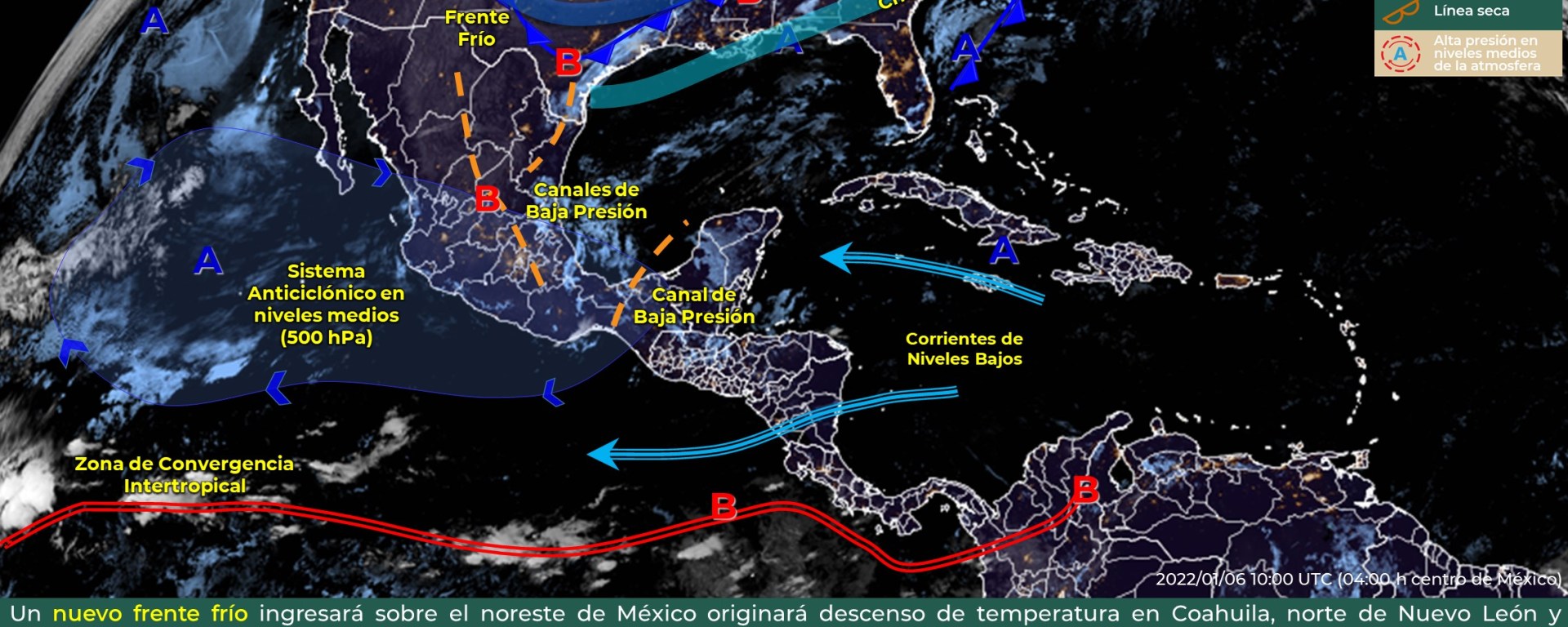 Un canal de baja presión al sureste de la península de Yucatán y el ingreso de aire