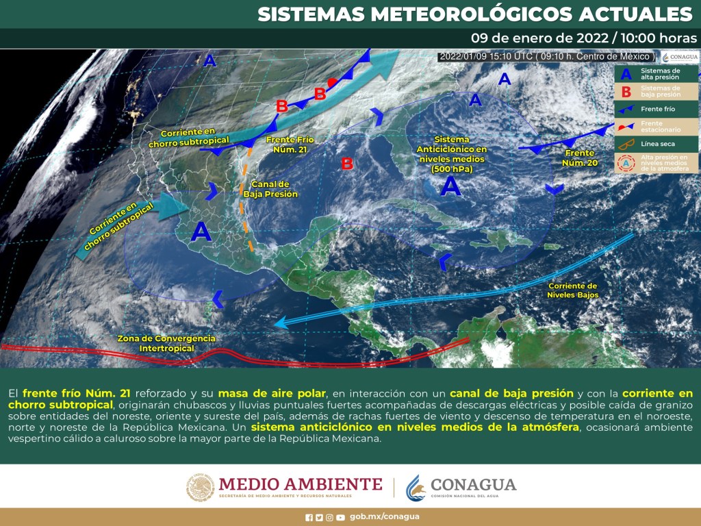 península de Yucatán estarán generando ingreso de aire cálido y húmedo del mar Caribe, situación que ocasionará intervalo de chubascos con tormentas en el sur y norte de Quintana Roo, así como en el sur y