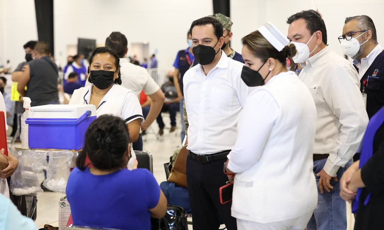 Junto con el titular de la Secretaría de Educación del Estado (Segey), Liborio Vidal Aguilar, y el Coordinador Estatal para la vacunación contra el Coronavirus, Capitán de Corbeta Carlos Gómez Montes de Oca, Vila Dosal recorrió el módulo instalado en el Centro de Convenciones Yucatán Siglo XXI, donde aseguró existen vacunas suficientes para continuar con este proceso, y pidió al personal docente registrarse en la plataforma federal para que les asigne el horario para la aplicación de sus dosis de refuerzo y así evitar aglomeraciones.
