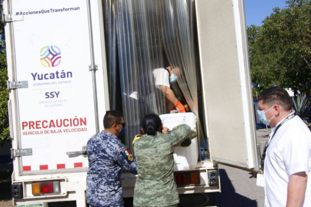 Acompañado del coordinador Estatal para la Vacunación Covid-19, capitán de Corbeta Carlos Gómez Montes de Oca, Díaz Sánchez constató la descarga del lote, a cargo de personal del Ejército, el cual se colocó en un camión thermoking de la SSY, para su posterior traslado al almacén de vacunas, desde donde se distribuirá estos fármacos a los lugares donde se aplicarán.