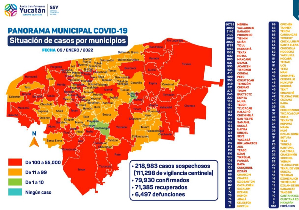 Específicamente, en Mérida se han diagnosticado 49,420 personas contagiadas de Coronavirus (casos acumulados al 14 de enero), que viven en: