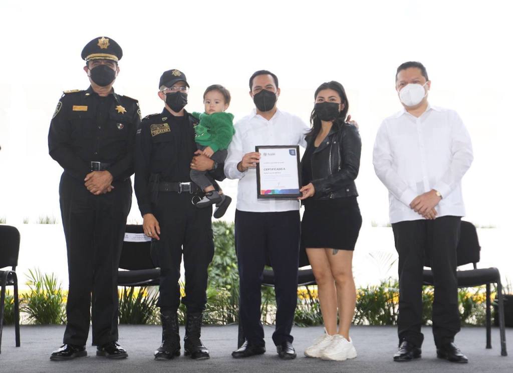 Mérida, Yucatán, 17 de enero de 2022.- Cada vez son más los elementos de la Secretaría de Seguridad Pública (SSP) de Yucatán que gozan de una mejor calidad de vida para ellos y sus familias, luego de que el Gobernador Mauricio Vila Dosal entregó apoyos de 2,600 pesos bimestrales pesos para gastos de alimentos y transporte dirigidos a los hijos de los agentes de la corporación estatal, que se suman a la beca de inscripción y colegiatura del 100% para que estudian en cualquier universidad del estado ya pública o privada, y certificados del programa de “Apoyo a la Vivienda a los Policías”, esquemas que los estimulan a continuar con su labor de cuidar a las familias yucatecas.
