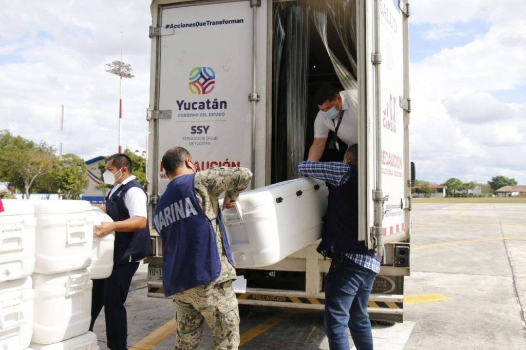 Acompañado del coordinador Estatal para la Vacunación Covid-19, capitán de Corbeta Carlos Gómez Montes de Oca, Díaz Sánchez constató la descarga del lote, a cargo de personal del Ejército, el cual se colocó en un camión thermoking de la SSY, para su posterior traslado al almacén de vacunas, desde donde se distribuirá estos fármacos a los lugares donde se aplicarán.