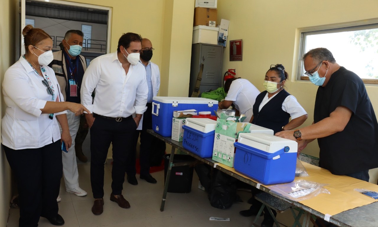 Progreso Yucatán a 24 de enero 2022.- Esta mañana el alcalde Julián Zacarías Curi visito la Unidad Deportiva Progreso para supervisar la jornada de vacunación, de la dosis de refuerzo contra el Covid-19 a adultos de 40 a 59 años.