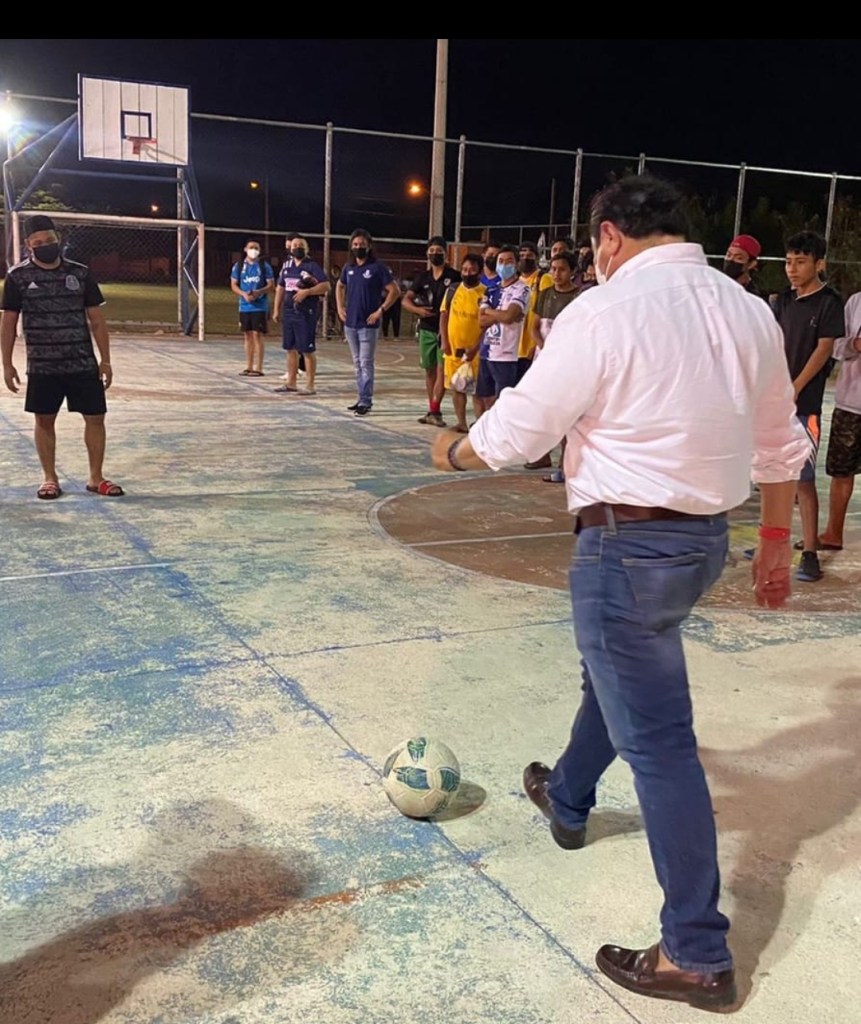 Por último, Aguilar y Aguilar protagonizó la patada inicial, junto con Juan Soberanis. También estuvieron presentes Ana Fleites Chalé, jefa de Vinculación y Promoción del deporte de la comuna, y Benjamín Cong, árbitro del torneo.