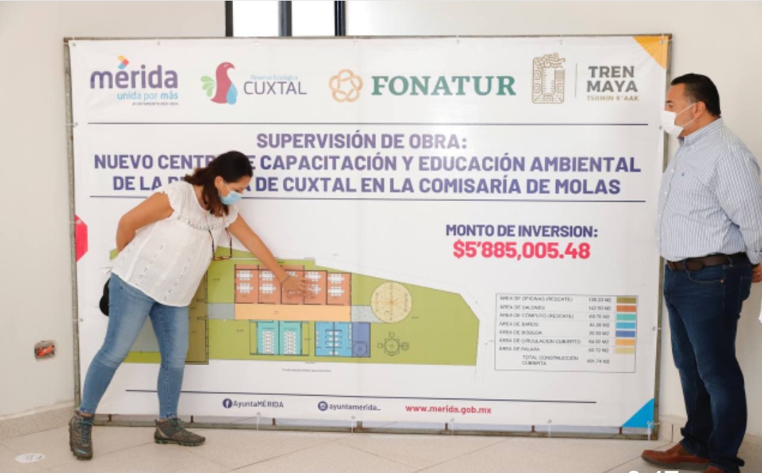 Supervisa la construcción del Centro de Capacitación y Educación Ambiental de la Reserva Ecológica Cuxtal en la comisaría de Molas