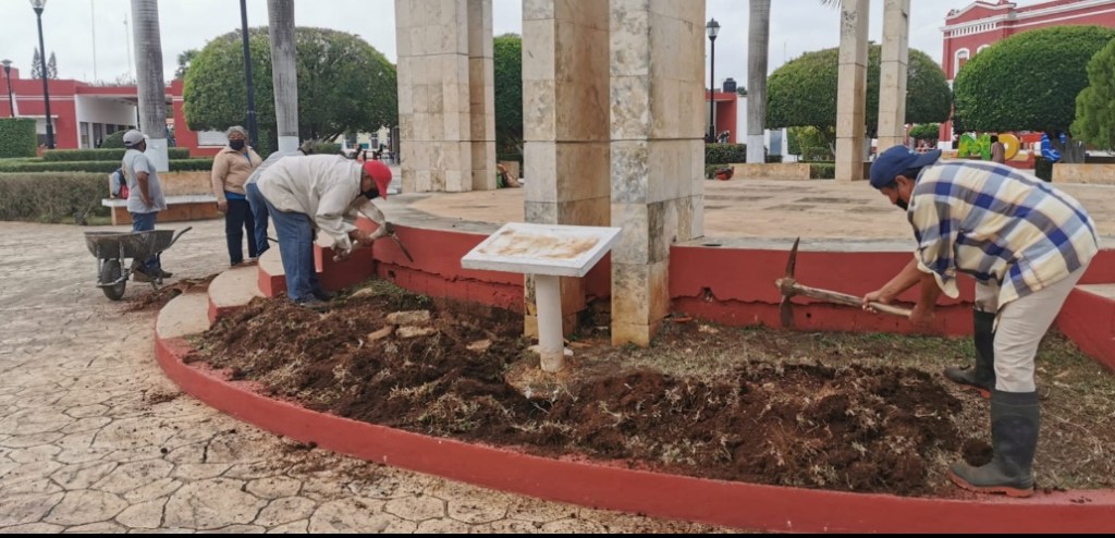 La dirección de Imagen Urbana y Ecología del ayuntamiento de Motul se encuentra realizando intensos trabajos de mantenimiento al Parque principal de nuestra ciudad.