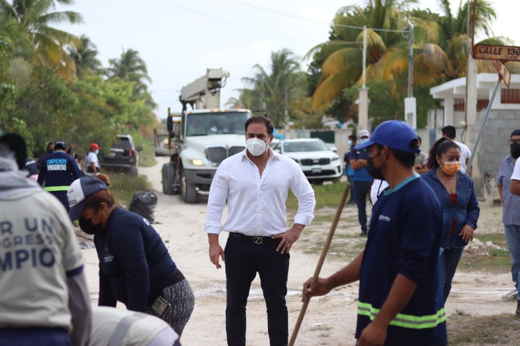 Para supervisar estos trabajos, estuvo acompañado del Ing. Karim Alberto Dib López, Regidor de Servicios Públicos, Cementerios, Agua Potable, Transporte y Zona Costera; de la L.A.E Cintia Guadalupe Sosa Gómez, Directora de Zona Costera; del CP Emilio Javier Góngora Ortegón, Director de Prolimpia; del C. Andrés Yonan Cutz Mena, Comisario de Chelem y el Lic. Ricardo Jerez Obando, Encargado de la Unidad de Atención a Comisarías.