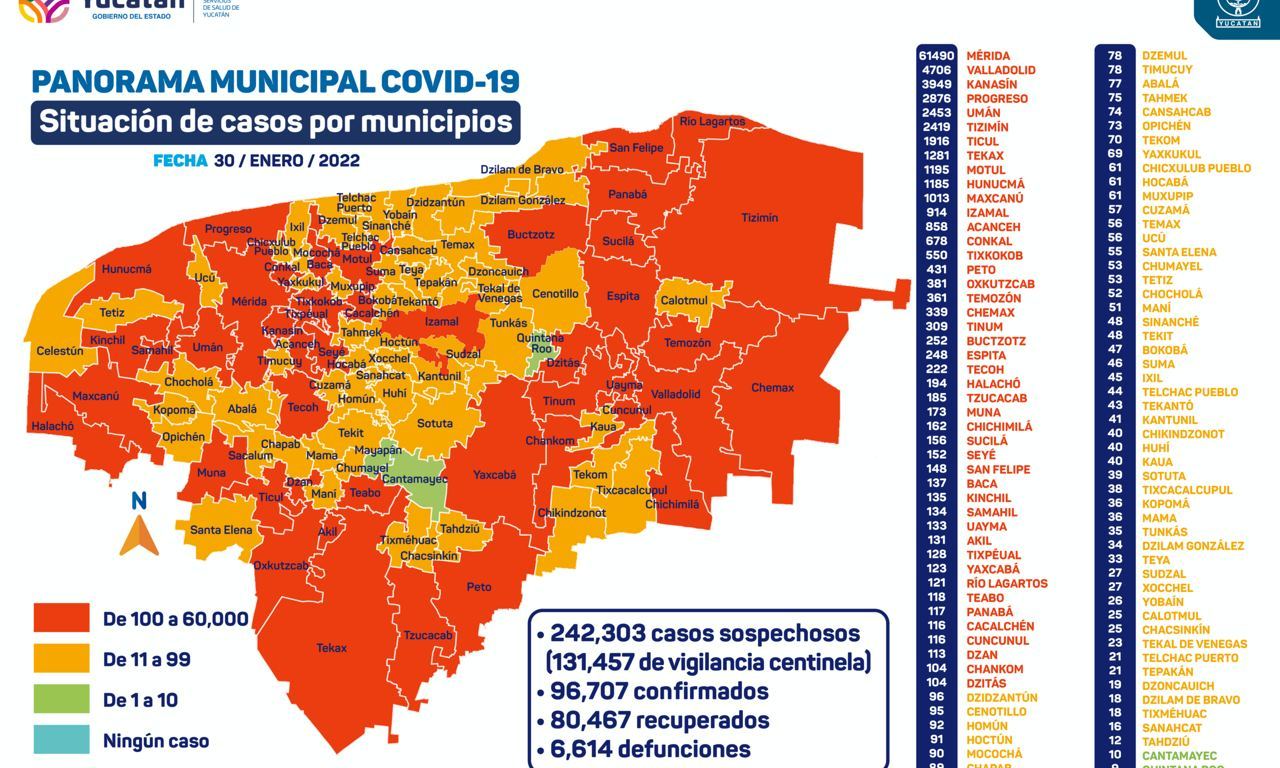 Específicamente, en Mérida se han diagnosticado 58,254 personas contagiadas de Coronavirus (casos acumulados al 29 de enero), que viven en: