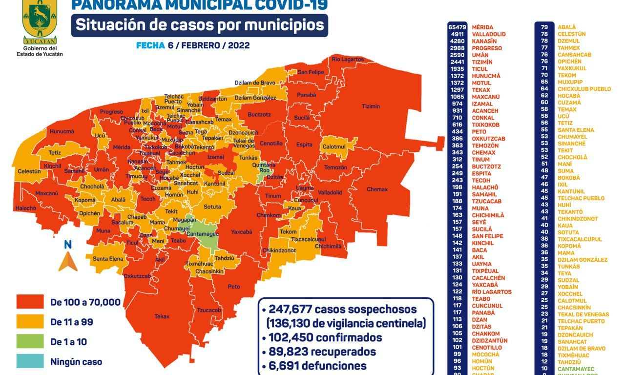 Específicamente, en Mérida se han diagnosticado 62,953 personas contagiadas de Coronavirus (casos acumulados al 5 de febrero), que viven en: