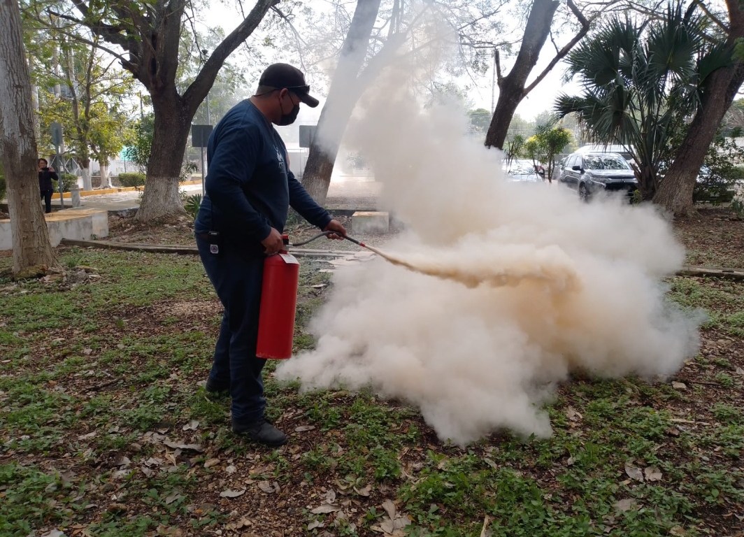 Elementos de protección civil encabezados por la directora, Magdalena Lara Guerra, participaron el día de ayer en un curso sobre “Usos y Manejos de Extintores”, realizado en el Centro de Bachillerato Tecnológico, Industrial y de Servicios #80 de la ciudad de Motul.