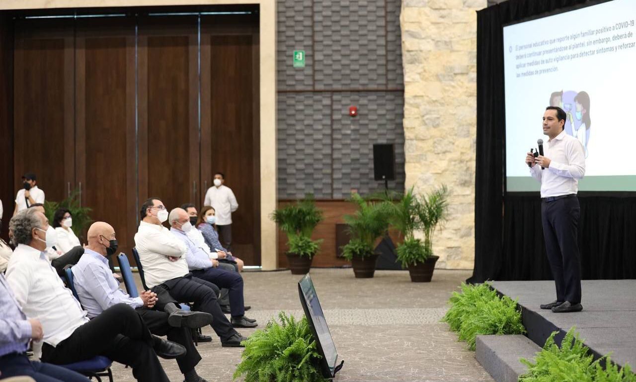 Junto con los titulares de la Secretarías de Salud (SSY), Mauricio Sauri Vivas, de Investigación, Innovación y Educación Superior (Siies), Mauricio Cámara Leal y Educación (Segey), Liborio Vidal Aguilar, el Gobernador explicó los protocolos establecidos para el Regreso Seguro a Clases, al tiempo que reiteró que la principal preocupación es el cuidado de la salud, pero el tema educativo ya no puede seguir postergándose.