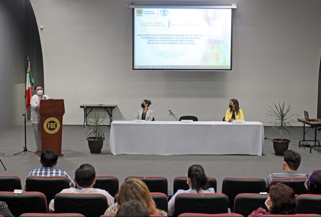 Mérida, Yucatán, 15 de febrero de 2022.- Expertos jurídicos de los sectores público y privado, de Yucatán, Tabasco, Aguascalientes, Chihuahua y Perú, participarán del 14 al 25 de febrero en las jornadas por el Mes de la Justicia Alternativa, con las que la Fiscalía General del Estado (FGE) busca especializar y otorgar mejores herramientas de trabajo a cerca de 50 mediadores.