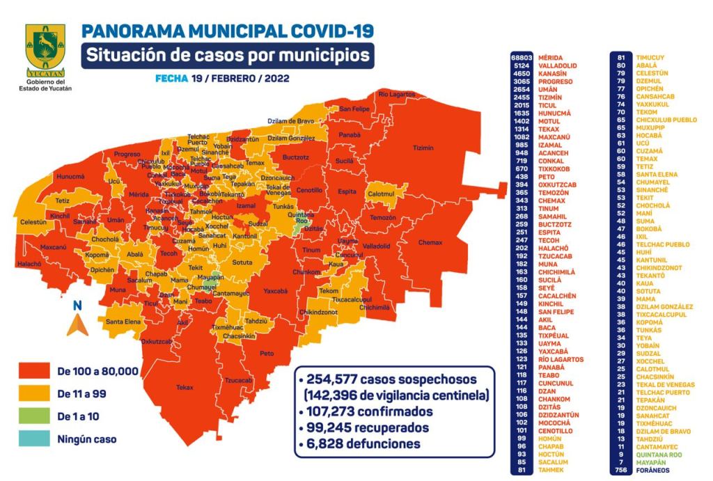 Específicamente, en Mérida se han diagnosticado 66,454 personas contagiadas de Coronavirus (casos acumulados al 18 de febrero), que viven en: