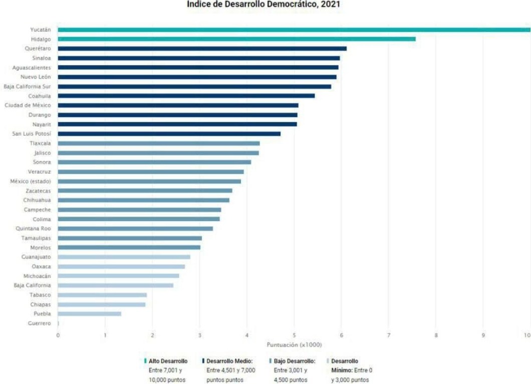 Los resultados antes señalados permitieron que Yucatán se posicione en el grupo de alto desarrollo democrático, lo que representa seguridad para el ejercicio pleno de los derechos de sus habitantes, así como la atención a sus demandas.