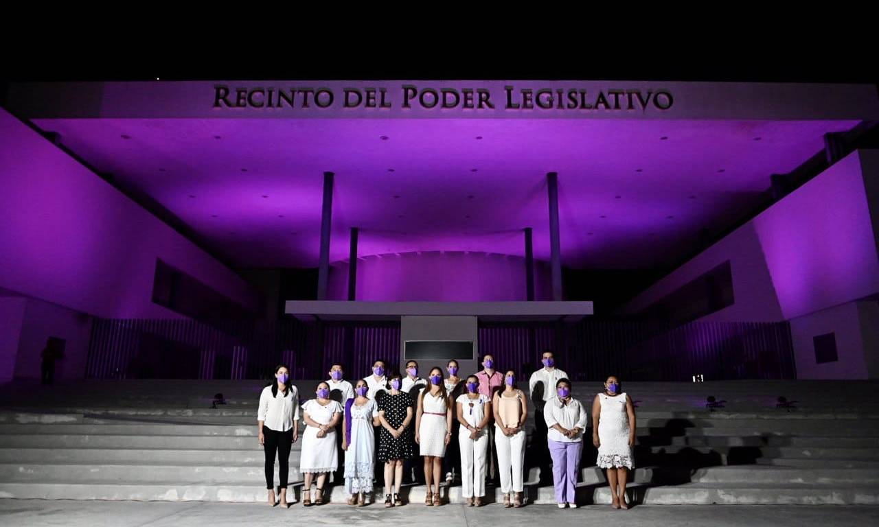 En conmemoración al 8 de marzo, Día Internacional de la Mujer, diputadas y diputados y, autoridades estatales, fueron testigos de la iluminación del Congreso del Estado.
