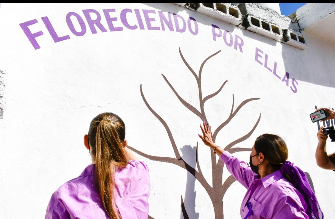 Vale la pena mencionar que en los muros colindantes a dicho jardín se rotuló el número de denuncia 089 y las ramas de un árbol, donde los asistentes plasmaron las palmas de sus manos con pintura de color violeta, símbolo de la igualdad de género.
