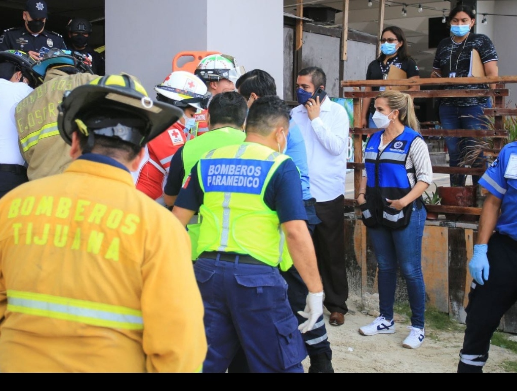 Elementos de la Policía Municipal, Cuerpo de Bomberos, Ejército, Guardia Nacional y peritos de la Fiscalía General del Estado (FGE) se encuentran en el lugar de los hechos para determinar el estado del inmueble ubicado en la calle 28 norte, frente al club de playa Mamita’s, en tanto se le da pronta atención a las personas lesionadas.