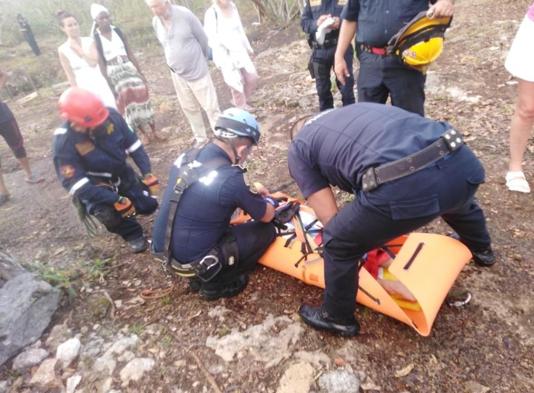 Al recibir la llamada de auxilio, los bomberos, paramédicos y policías estatales llegaron al lugar por un camino de terracería, realizaron el rescate y trasladaron a la lesionada en una ambulancia de la SSP a un hospital en Mérida.