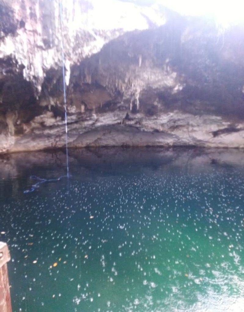 Durante la visita al cenote “Suhem”, en Pixyah, municipio de Tecoh, la mujer se arrojó al agua, cayó de espaldas y sufrió probable esguince cervical.