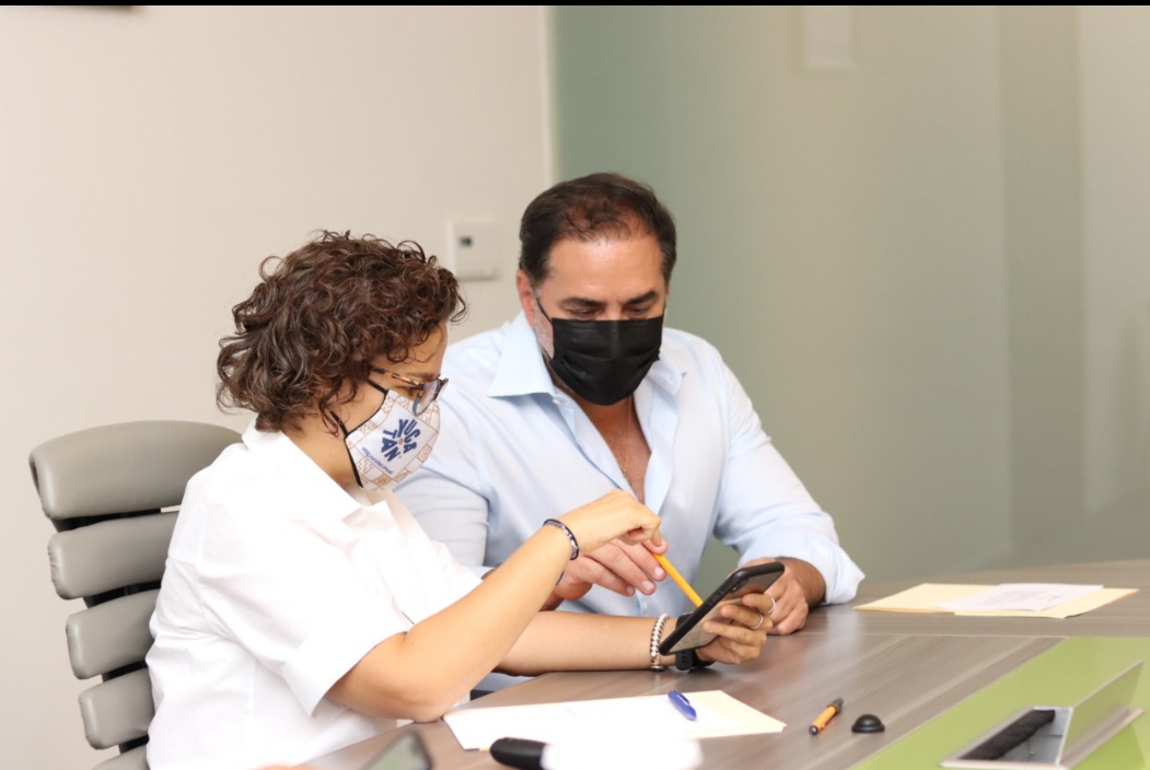 Progreso, Yucatán 23 de marzo de 2022.- A pocos días de que se inaugure el parque temático “Sendero Jurásico”, el alcalde de Progreso, Julián Zacarías Curi sostuvo una reunión con la titular de la Secretaría de Fomento Turístico, Michelle Fridman Hirsch y miembros del H. Ayuntamiento de Progreso.