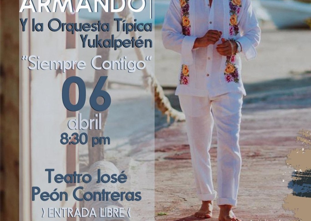 Cantará temas de autores contemporáneos, acompañado de la Orquesta Típica Yukalpetén y grandes personalidades invitadas.