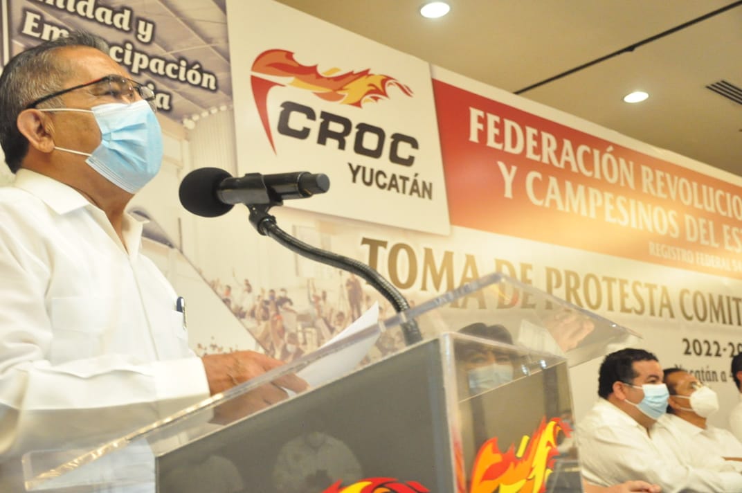 En el marco de la toma de protesta del Comité Ejecutivo Estatal de la Federación Revolucionaria de Obreros y Campesinos en el Estado de Yucatán para el periodo 2022-2028, presidida por Pedro Oxté Conrado, el Secretario General del CEN de la CROC, Isaías González Cuevas, hizo un llamado a rediseñar la estrategia sindical que permita no sólo la defensa de los derechos laborales, sino también un reparto de la riqueza equitativa en pro de la justicia social.