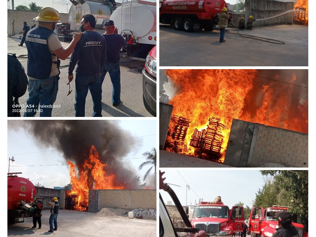 Se incendian tarimas de una bodega en la calle Calle 10a x 17 y 19 de Umána cerca de la escuela Raquel Dzib Cicero. El fuego alcanzó la altura de hasta cinco metros. El cinistro fue controlado por bomberos y Protección Civil. También llegaron al lugar ambulancias de rescate al mando de Santiago Aranda, unidad 5975 y 6080. Asistieron también el Comandante de la policía municipal de Umán, Roberto Iván Pacheco Aranda, unidad 6552, Comandante julio Gonzales Unidad 015, la 329 comandante a cargo de, Ulises Escobedo y el de bomberos, Santiago Ramos en la Unidad 829.