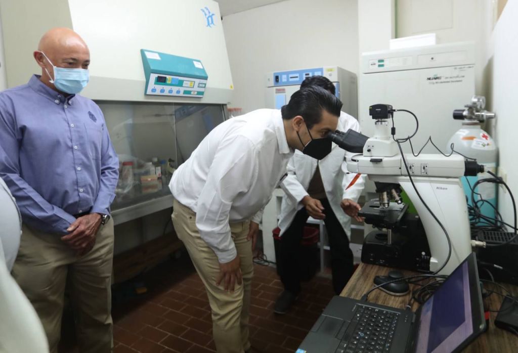 En representación de Vila Dosal, el titular de la Secretaría de Investigación, Innovación y Educación Superior (Siies), Mauricio Cámara Leal, constató el funcionamiento de los equipos que permitirán a los académicos reforzar el trabajo de investigación de enfermedades relacionadas con el mal de Chagas, la tuberculosis, toxoplasmosis, rickettsia y Covid.