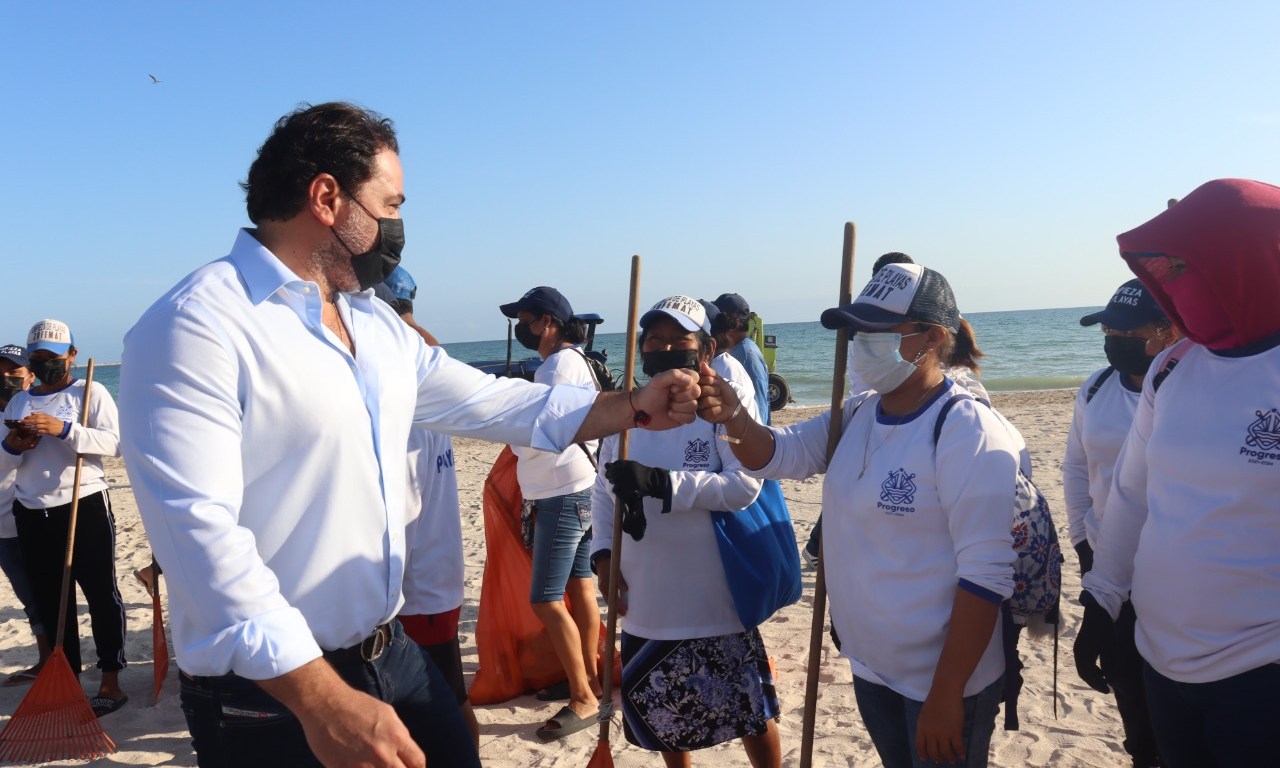 Progreso, Yucatán a 18 de abril de 2022.-Esta mañana el alcalde de Progreso, Julián Zacarías Curi acompañó a los 33 elementos del Programa de Limpieza de Playas y Ciénegas, en su labor por conservar las zonas costeras del puerto libres de residuos sólidos y contaminantes.