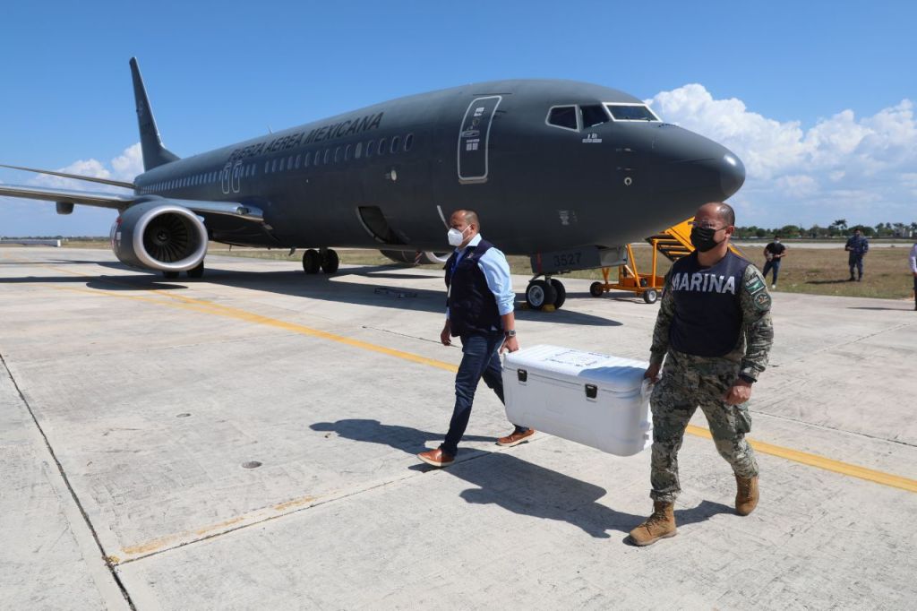 Por instrucción del Gobernador Mauricio Vila Dosal, el responsable de Vacunación de la SSY, Alejandro Díaz Sánchez, acudió a la Base Aérea Militar (BAM) Número 8 para supervisar la llegada de este nuevo cargamento, que arribó a bordo de una aeronave tipo Boeing 737 de la Fuerza Aérea Mexicana con matrícula 3527 proveniente de la Ciudad de México, que tocó territorio estatal a las 15:19 horas.