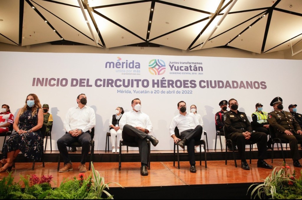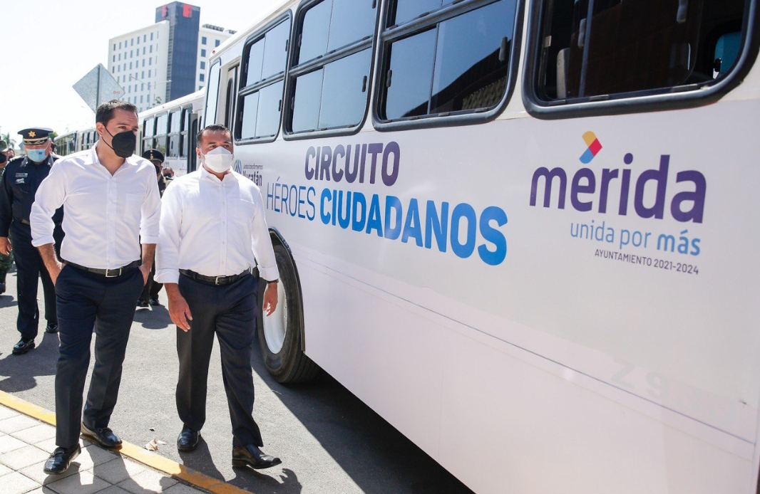 Ponen en marcha el Gobernador Mauricio Vila Dosal y el alcalde de Mérida, Renán Barrera Concha, el circuito Héroes Ciudadanos, para personal de salud, protección civil, policías y bomberos, así como a personal del Ejército, Marina, Guardia Nacional y la Fiscalía General del Estado