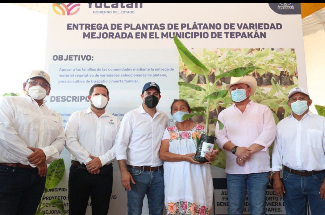 En gira de trabajo por Tepakán, Vila Dosal, junto al alcalde anfitrión, Weyler Aarón Coral Manrique, hizo entrega de 1,000 plantas de plátano de la variedad roatán mejoradas, que permitirán una mayor producción y mejor calidad del fruto.
