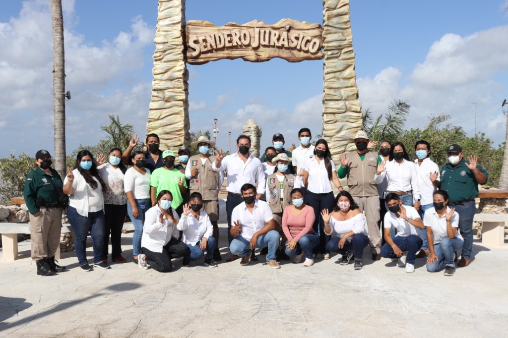 Progreso, Yucatán a 22 de abril de 2022.- A pocos días de abrir sus puertas el Sendero Jurásico, esta mañana el alcalde Julián Zacarías Curi, asistió hasta esta atracción turística para hacer la entrega de uniformes y aditamentos a más de 24 colaboradores que estarán operando este parque temático.