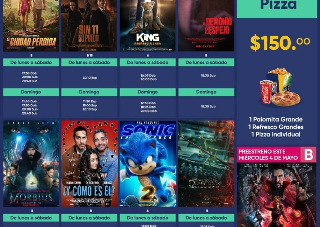 Los @CinesSigloXXI estrenan este jueves #LaCiudadPerdida, #King: Regreso a Casa y #SinTiNoPuedo. Además, seguimos con #Sonic 2, #AnimalesFantásticos #Dumbledore, #Morbius y más