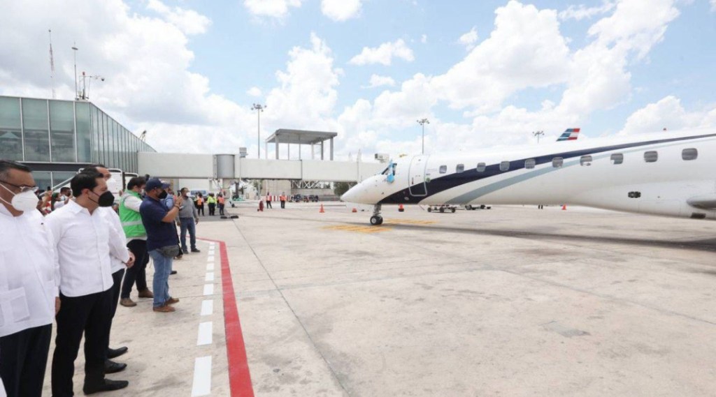 Mérida, Yucatán, 29 de abril de 2022.- Yucatán incrementa su conexión aérea y tiene las puertas abiertas al mundo, luego de que el Gobernador Mauricio Vila Dosal inauguró la ruta aérea Mérida-Guatemala, lo que abona al crecimiento económico de la entidad al captar mayor turismo, derrama económica y con ello la generación de más empleos, producto de la fuerte promoción del estado.
