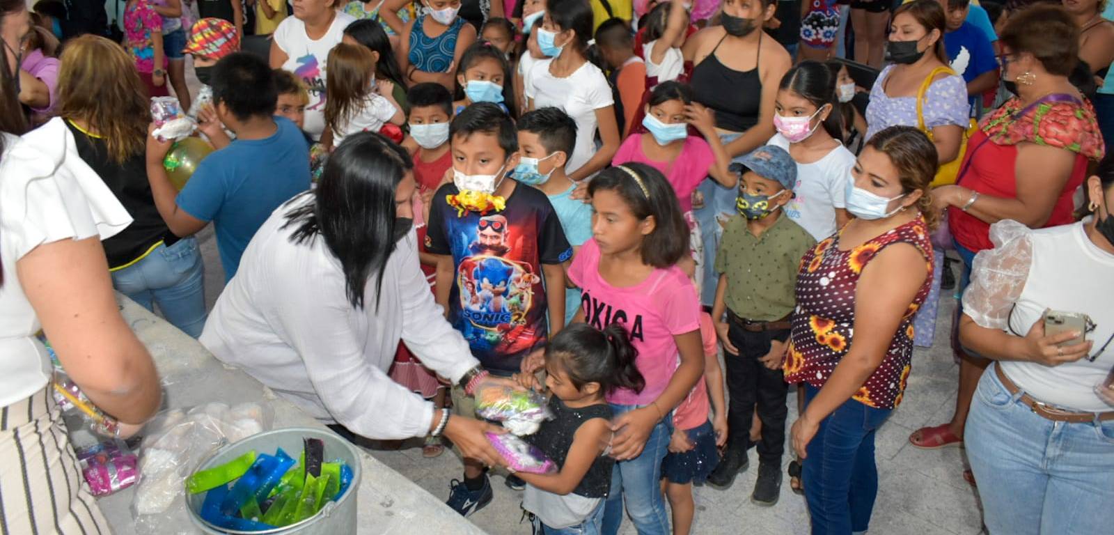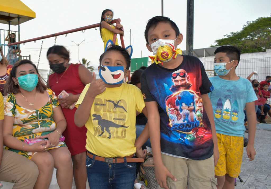 Con cubrebocas, algunos muy originales, niñas y niños acudieron al parque del Centro Comunitario Hábitat de aquella localidad, para celebrar su infancia con show, concursos, entre ellos de disfraces así como regalos y dulces; elementos que fueron bien recibidos por los más de 500 pequeños invitados.