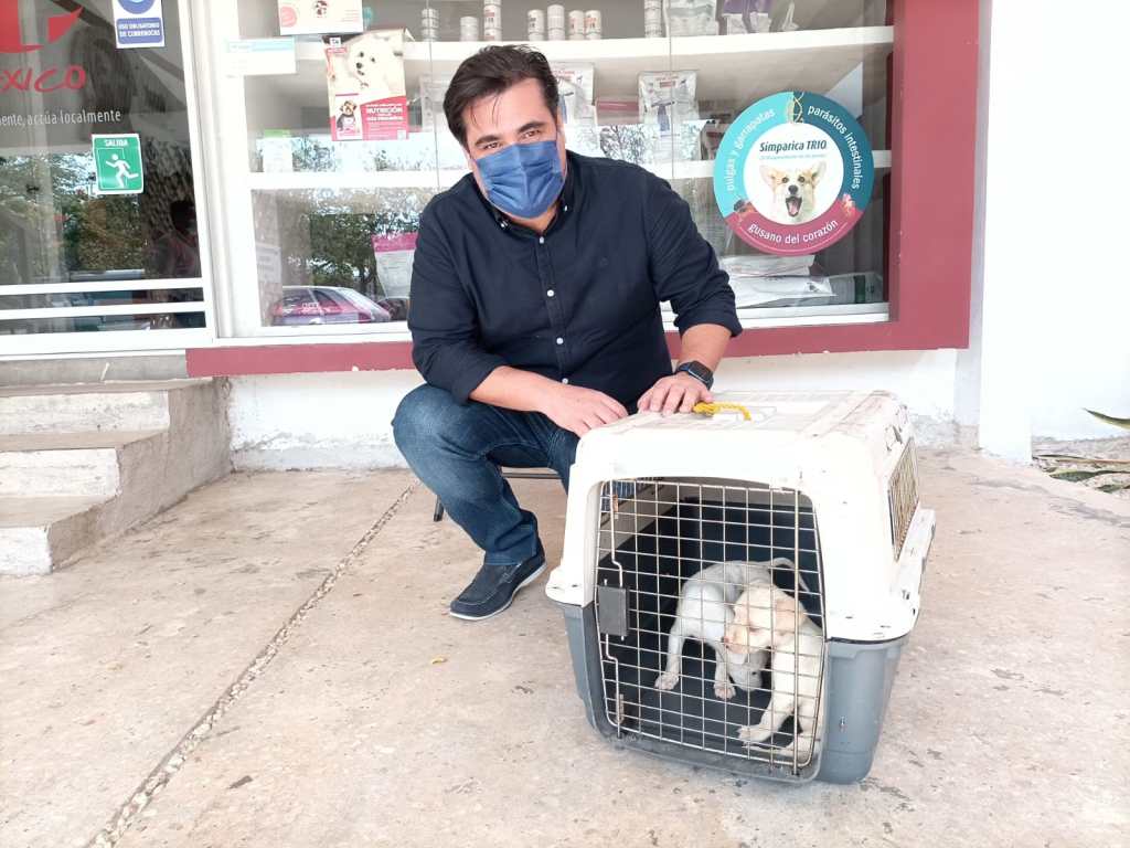 Mérida, Yucatán, a 2 de mayo de 2021. La “Operación Rescate Perritos de Kululkán”, que lleva al cabo en Chichén Itzá Cultur y organizaciones protectoras de animales, nuevamente rindió frutos, ya que dos cachorros, de apenas dos meses, fueron atrapados y traídos a Mérida a fin de que reciban atención veterinaria.