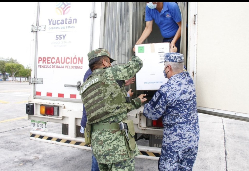 Acompañado del coordinador Estatal para la Vacunación Covid-19, capitán de Corbeta Carlos Gómez Montes de Oca, Díaz Sánchez constató la descarga de las vacunas e insumos, a cargo de personal del Ejército, el cual se colocó en un camión thermoking de la SSY, para su posterior traslado al almacén de vacunas, desde donde se distribuirá estos fármacos a los lugares donde se aplicarán.