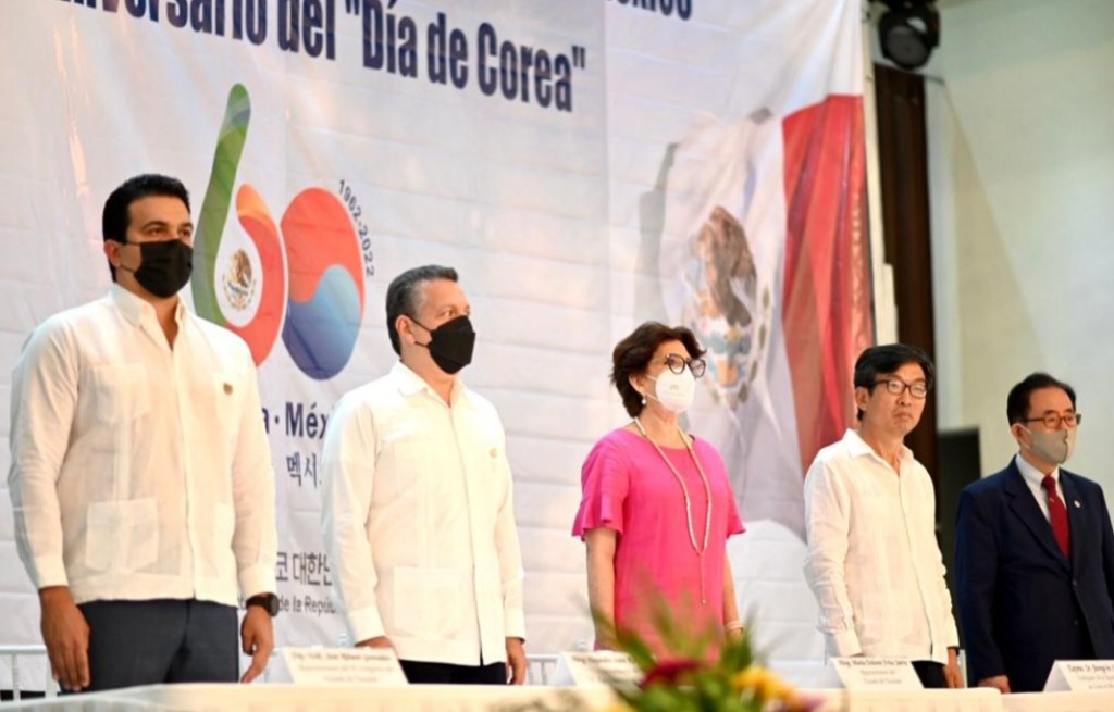 La titular de la Secretaría General de Gobierno (SGG), María Fritz Sierra, y el embajador de ese país en México, Jeong-In Suh, encabezaron la ceremonia conmemorativa por el 60 aniversario de las relaciones diplomáticas entre las dos naciones, en el marco del cuarto Día de Corea en Mérida.