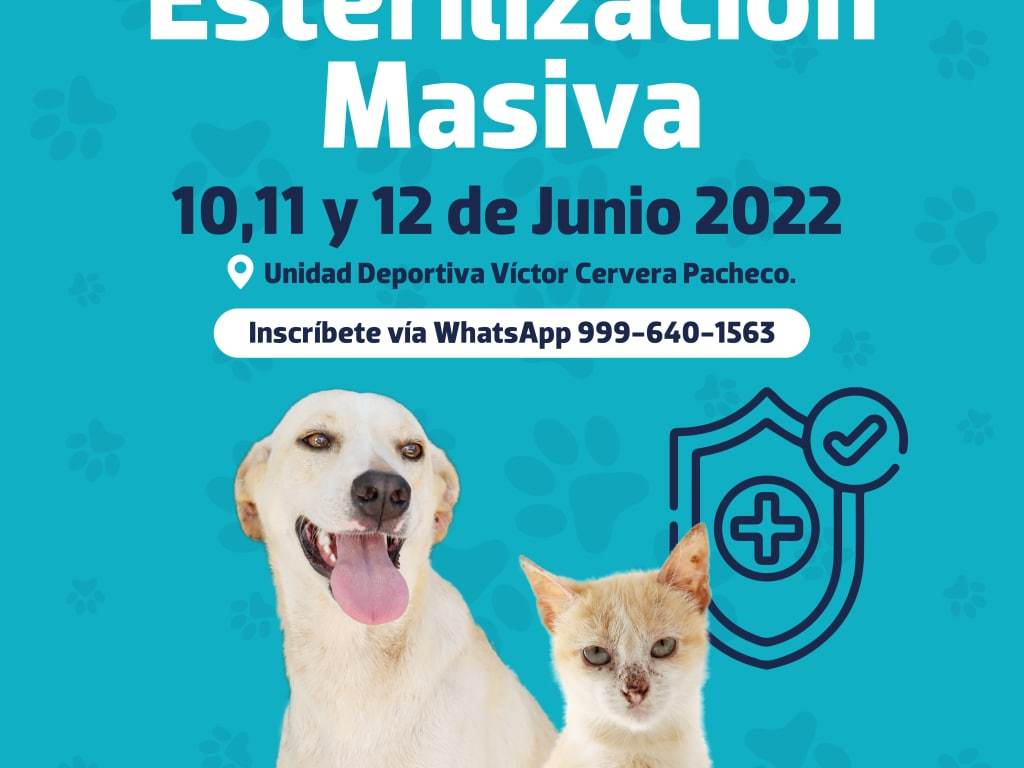 Esta actividad, en la cual participan las organizaciones “Planet Pethood”, “Ester y Liza”, “No más perritos”, AFAD, «Ginger’s Jungle», «Patitas», «Grupo Nicxa», «Progreso Fishing Tours», «Bepensa» y «New leash, lend a paw», tendrá lugar en la Unidad Deportiva “Víctor Cervera”, ubicada en el boulevar a Chicxulub Puerto, donde se espera que sean esterilizadas más de 550 mascotas.