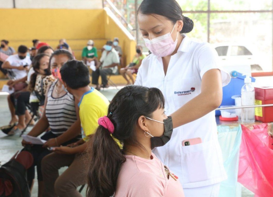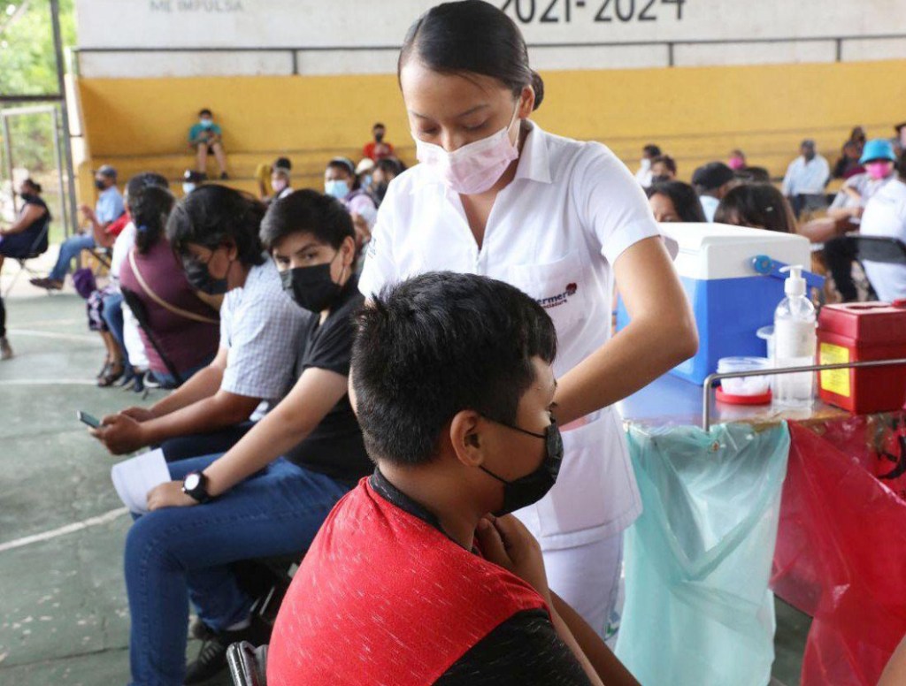 La aplicación del fármaco marca Pfizer, para este sector de la población, se lleva a cabo en Peto, Izamal, Maxcanú, Espita, Halachó, Yaxcabá, Temozón, Tecoh, Tzucacab, Tixkokob, Mama y Oxkutzcab; en esta última, desde temprana hora, se encontraba la madre de familia Reina Guadalupe Basulto Escobedo, quien acudió para que su hija, que cursa el sexto grado de primaria, accediera a este cuidado.