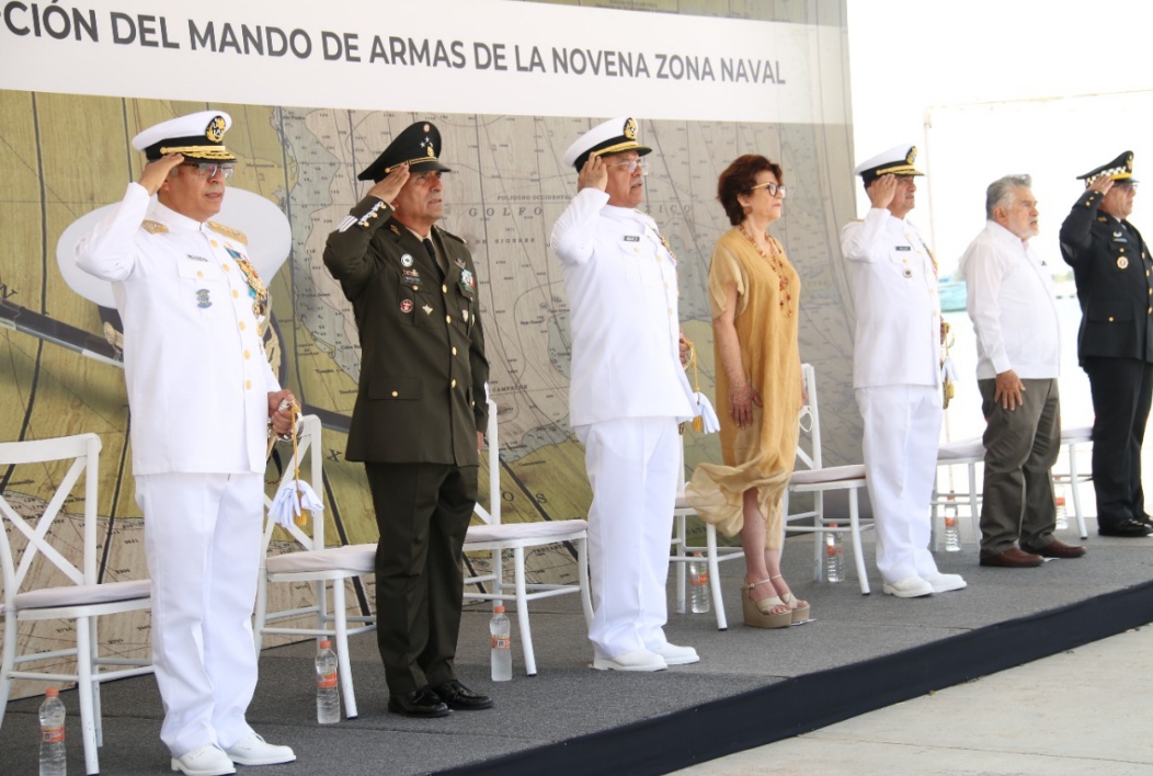 En la explanada de este recinto castrense, ubicado en el Puerto de Abrigo de Yucalpetén, el nuevo comandante rindió protesta y pasó revista al personal, ante autoridades civiles y militares; el interventor designado en este solemne acto fue su homólogo de la V Región Naval, Javier Abarca García.