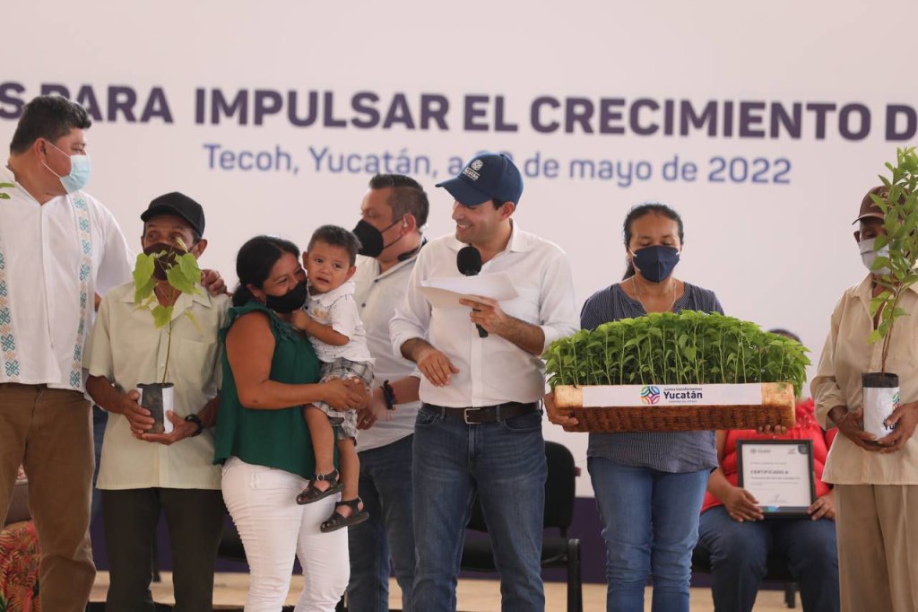 Tecoh, Yucatán, 20 de mayo de 2022.- Estamos saliendo adelante de los años más difíciles de nuestra historia y trabajando juntos, entre todos, es como nos ayudamos a levantarnos, así que debemos seguir unidos como uno, para seguir construyendo y entregarle a nuestros hijos el mejor Yucatán de todos los tiempos, indicó el Gobernador Mauricio Vila Dosal, al seguir en Tecoh la entrega de plantas de chile habanero y guayaba, para seguir transformando la vida de los yucatecos que trabajan el campo.